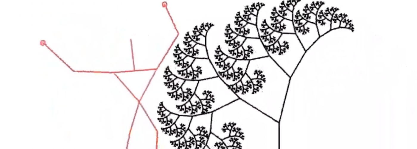 I slightly tweaked his code so that the angle at which the branches form is controlled by the position of my mouse. So by moving my mouse around, I could animate the tree.