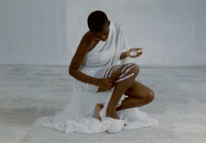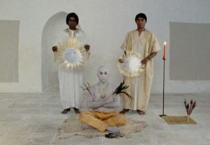 Haris Epaminonda’s first major exhibition in the UK centres on the newly commissioned film Chapters, 2013. Filmed in remote Cyprus landscape, Chapters is a poetic series of meticulously staged scenes with underlying narrative elements of love, longing, afterlife and ritual. The scenes are independent and run in a non-consecutive order, with narrative evoked by the actions of the performers. The static frame of the camera shapes the film as a continuously evolving series of ‘pictures’ or ‘tableaux’. The film draws together a spectrum of cultural influences, inspired by myths, ancient poetry, theatre and painting. Highlighting how the construction of the film was informed by her current practice, Epaminonda describes the work as an object that continuously moves – a sculpture without a fixed form.