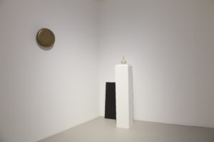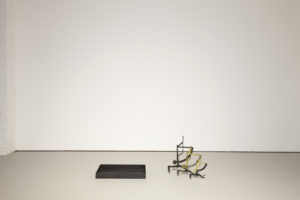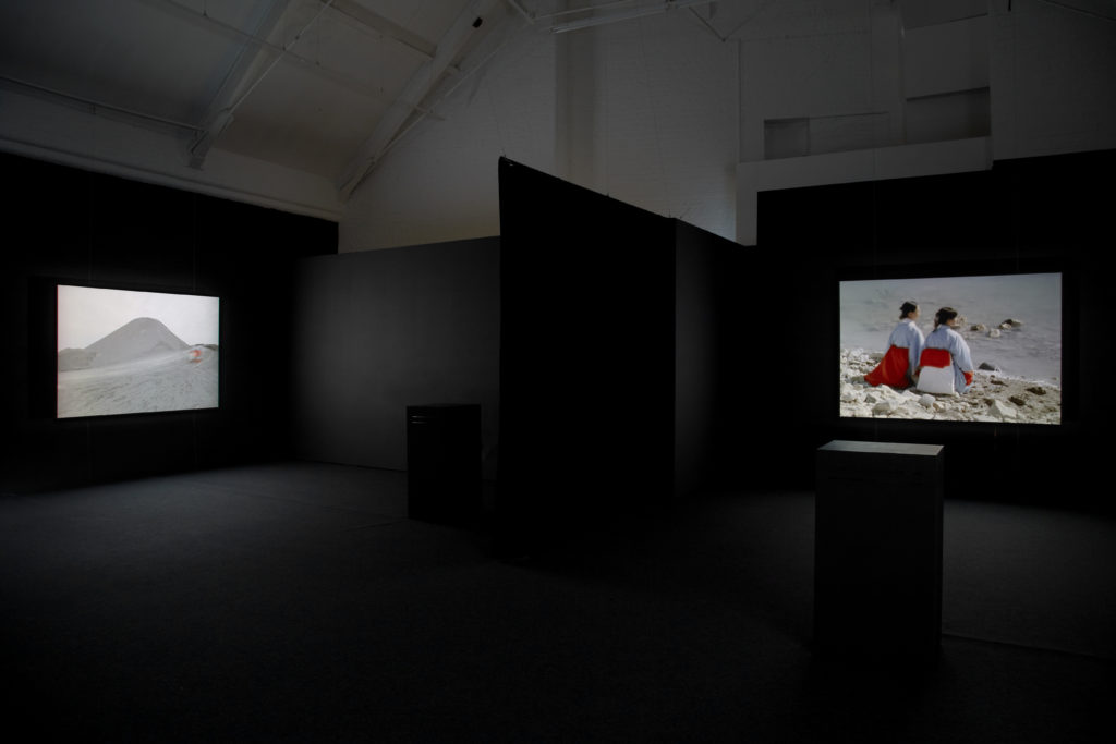 The subsequent rooms act as chambers containing a sparse arrangement of sculptural works, including both found and constructed objects. These relate to the logic of the film, such as its symbolic and formal aspects, yet they are also a continuation of her ongoing series Volumes, which began in 2009.