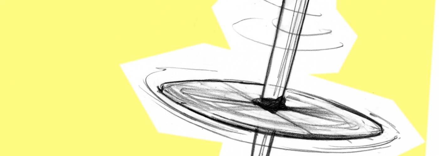 2. Gently but quickly pull one hand back towards you and drop the spinner onto the paper letting it dance an inky line all over the paper*.