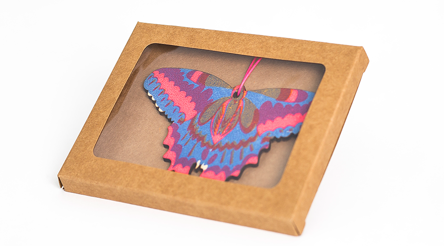 The laser-cut decoration features a wonderful moth design and comes with a waxed cotton loop for hanging.