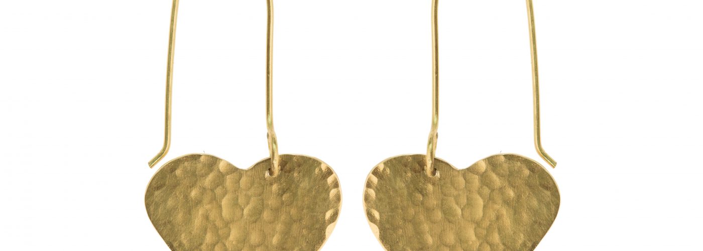 Heart Earrings, hammered brass
